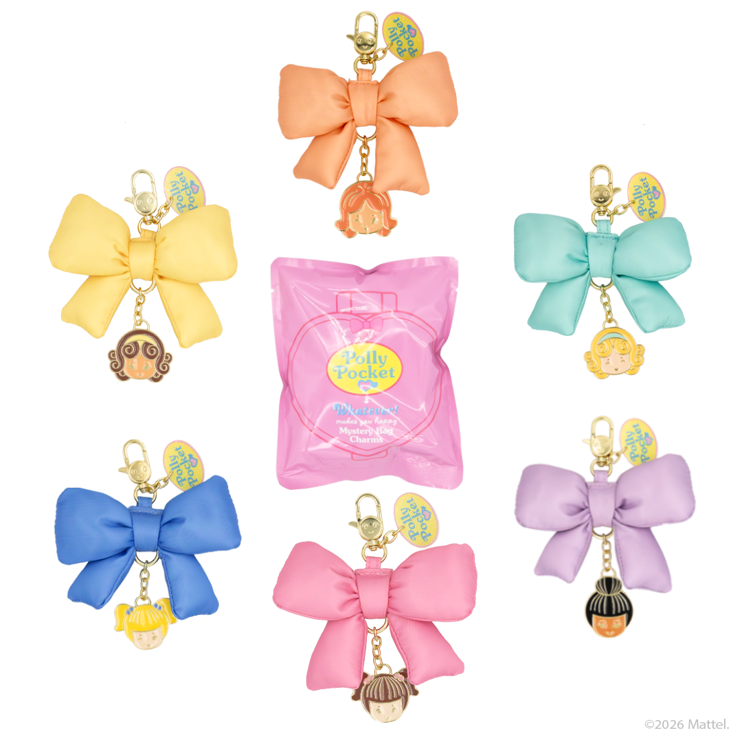 Sold blind, each bag hides one of six colorful combinations inspired by Polly and her best friends. Just like opening a vintage Polly Pocket™ compact, every unboxing is a surprise waiting to make you smile. The puffy nylon bows give a soft, collectible look, while the gold-tone hardware (complete with its own happy face!) adds that extra sparkle of cheer.